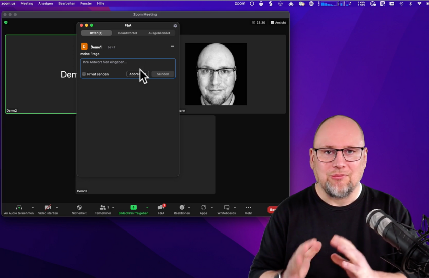 Mit dem aktuellen Update steht nun auch in normalen Meetings die Question & Answer Option zur Verfügung, die einige vielleicht aus der Webinar Lizenz von Zoom kennen. Aktuell kommen aber derzeit nur Nutzer*innen mit Education- oder Business Lizenzen in den Genuß dieser tollen Funktion.